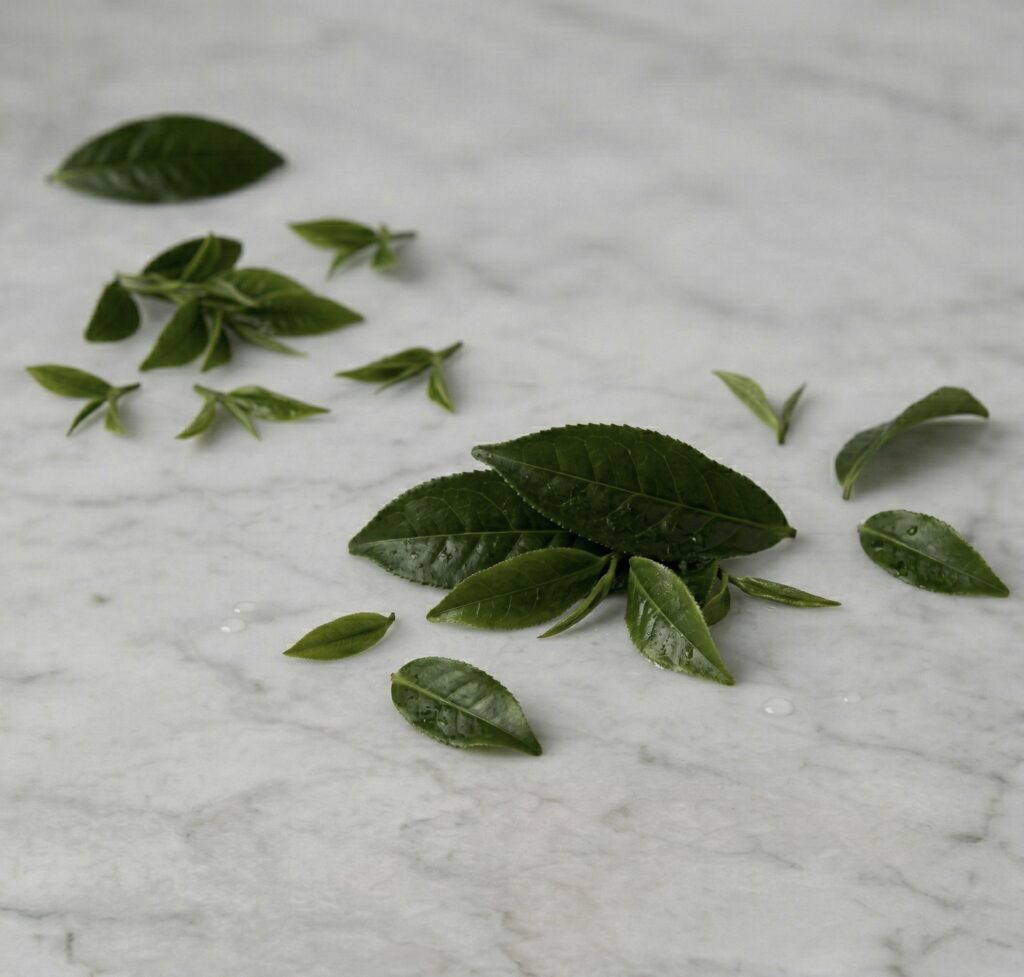 Clean and understated. Green tea lends a quiet, grounding presence that balances brighter and warmer notes.